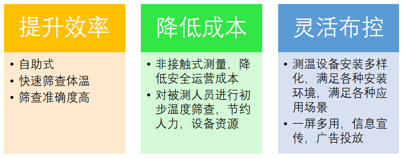 1、非接觸方式快速檢測(1-2秒),檢測測溫精度±0.3℃,可設置告警溫度閾值,超過閾值即告警,探測距離為0.3-1米;